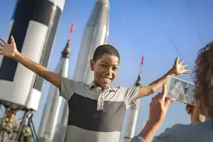 Here, you can discover NASA's plans to explore deep space and even the chance to get up close to life-size Mars rover replicas, with live shows every hour!